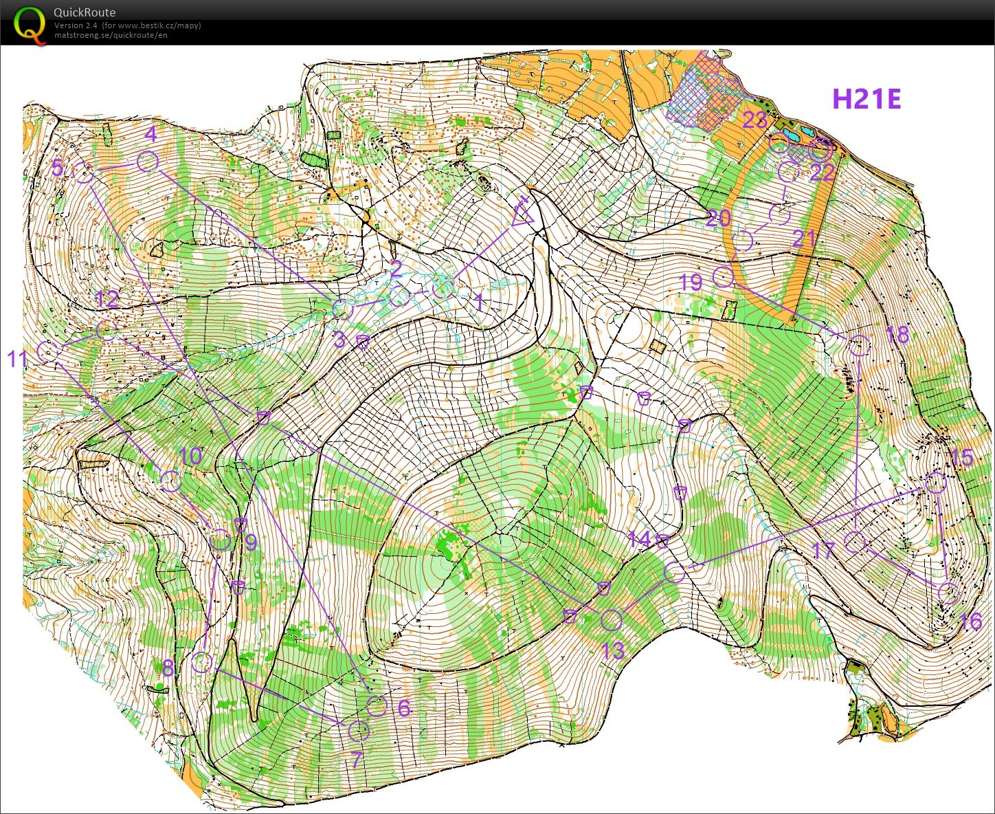 Nula chyb v dohledávkách potěší. Na K4 jsem omylem klesal dřív bordelem, zbytečných cca 30" zamrzí. Na K6 jsem mohl vzhledem ke zbytku závodu vymyslet i něco lepšího, než pochoďák 40 vrstevnic na kolmo, ale marný to nebylo, a tak jsem za K7 docvakl Trejkyho o 4 míny. Tempo jsme měli stejný, otestovali jsme pár voleb a doklepali to spolu až do cíle, to (a dva gely) hodně pomohlo. Škoda jen snahy napřímit K13, tam zhořela další půlminutka.